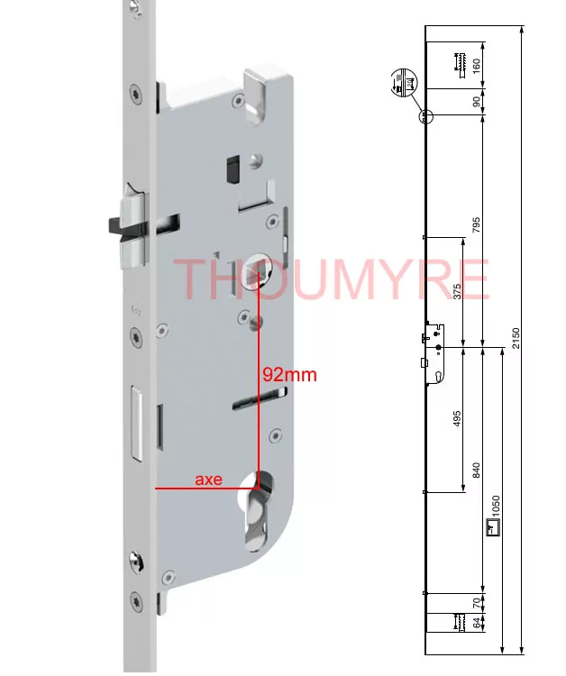A noter: cette serrure est re coupable et ajustable haut et bas avec les crémaillère